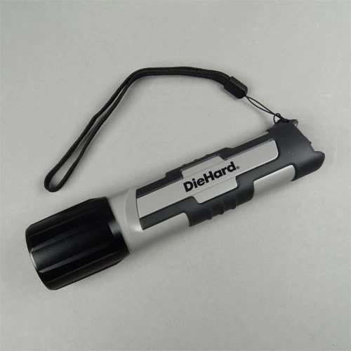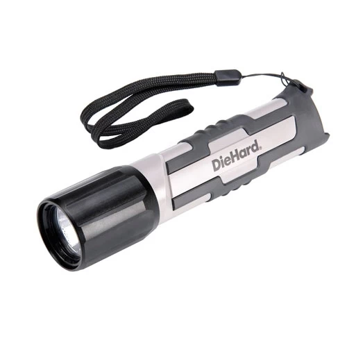 The DieHard 4AA flashlight has a nicely balanced beam with a bright center spot. With 2 brightness levels, this DieHard flashlight is a great flashlight for work, around the house, outdoor activities, etc. Choose high for distance – up to 570 foot beam range. Choose low for close up applications and for a long runtime of up to 70 hours.