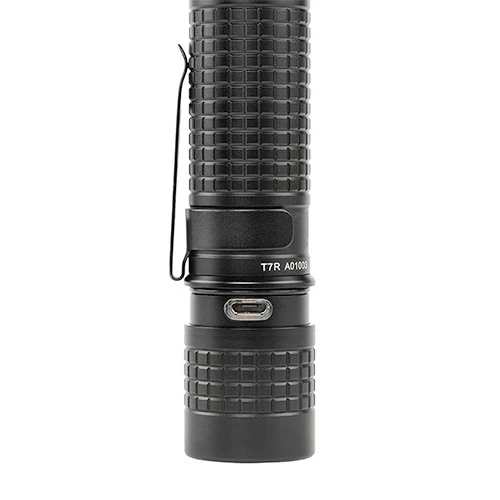 What’s included: Inova® T7R™ Powerswitch™ flashlight, rechargeable battery, USB cable and pocket clip (charging plug adapter sold separately)