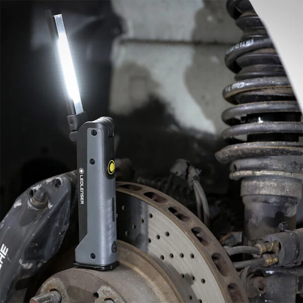 What’s included: LEDLenser iW5R Flex Work Light, integrated rechargeable battery, magnetic base, hanging hook, charging cable (round barrel plug on one end, USB-A on the other end) and AC adapter