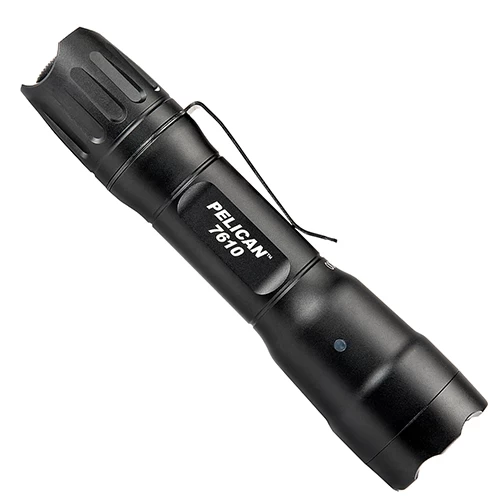 What’s included: Pelican 7610 flashlight with pocket clip, AA alkaline battery, AA battery cartridge, CR123/AA spacer and CR123 lithium battery cartridge