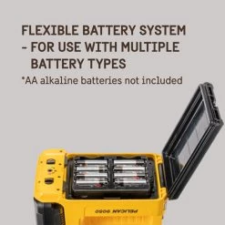 What’s included: Pelican 9050 lantern, 2 rechargeable battery packs, charging base, AC charge cord, adjustable shoulder strap