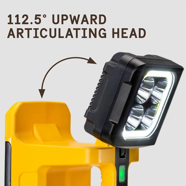 • brightness, runtime & beam range specs (with 2x Li-ion battery packs, included)