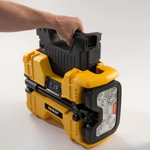 What’s included: Pelican 9480, Power Pack rechargeable battery, AC charge cord, 1 foot power output cord with cigarette lighter plug, shoulder strap