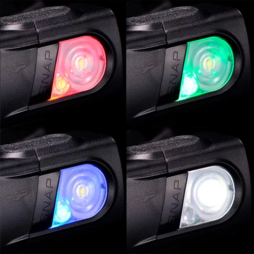 What’s included: Princeton Tec SNAP RGB (Red, Green, Blue) modular headlamp with lighting unit, head strap, bike bracket with 2 rubber handlebar bands, hanging attachment with carabiner and batteries